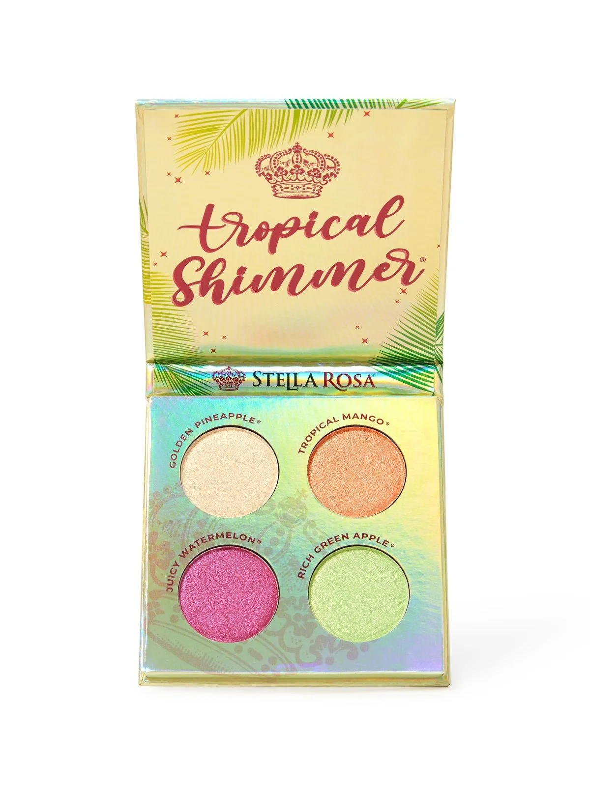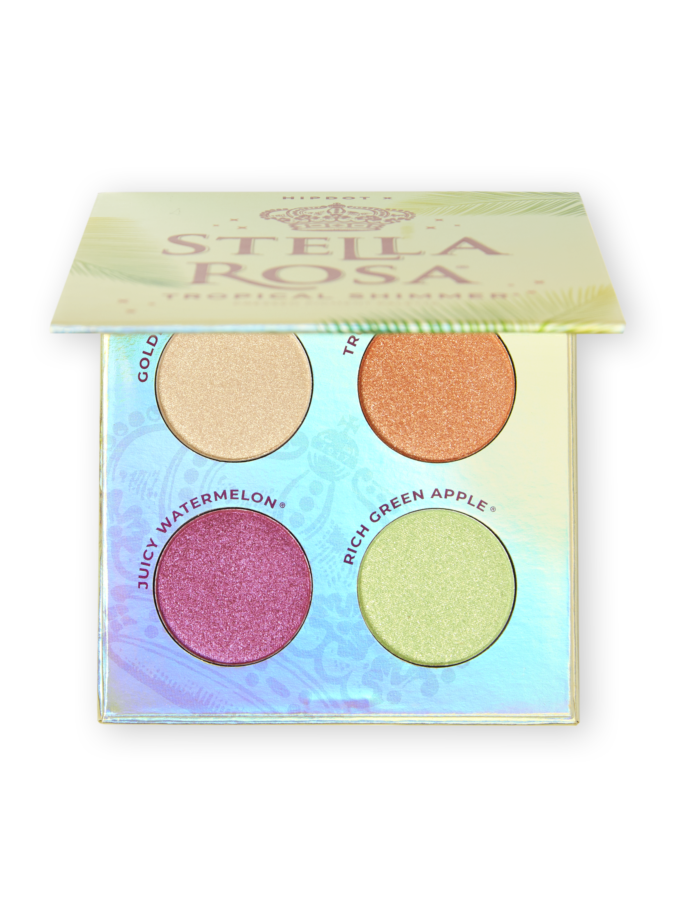 Packed here in the Tropical Shimmer eyeshadow palette are vibrant and radiant sparkles that just scream for a beach vacation. Glistening in the sun, the holographic casing will be nothing short of show stopping. Inspired by the Stella Rosa flavors: Pineapple, Mango, and Green Apple.